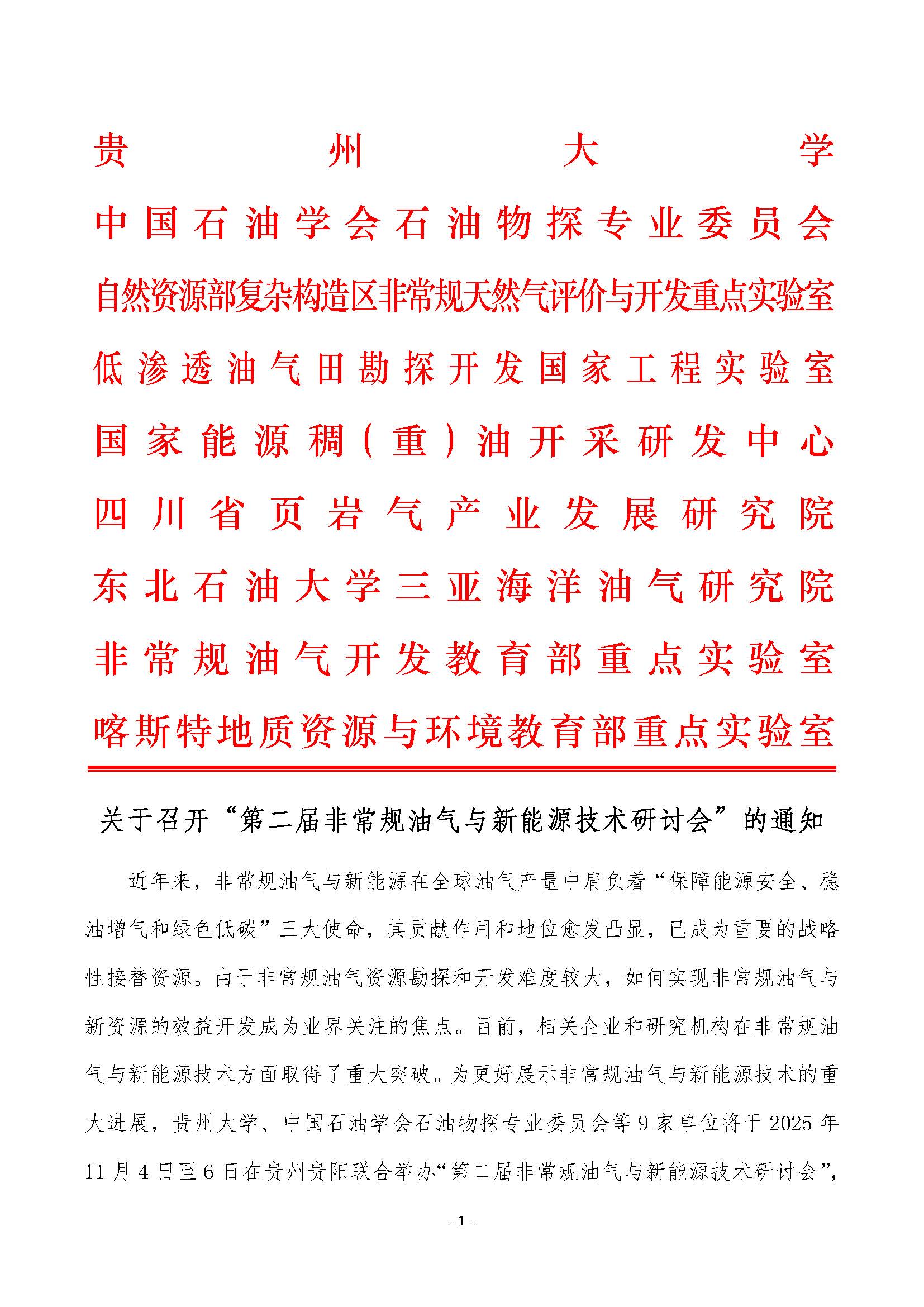关于召开“第二届非常规油气与新能源技术研讨会”的通知