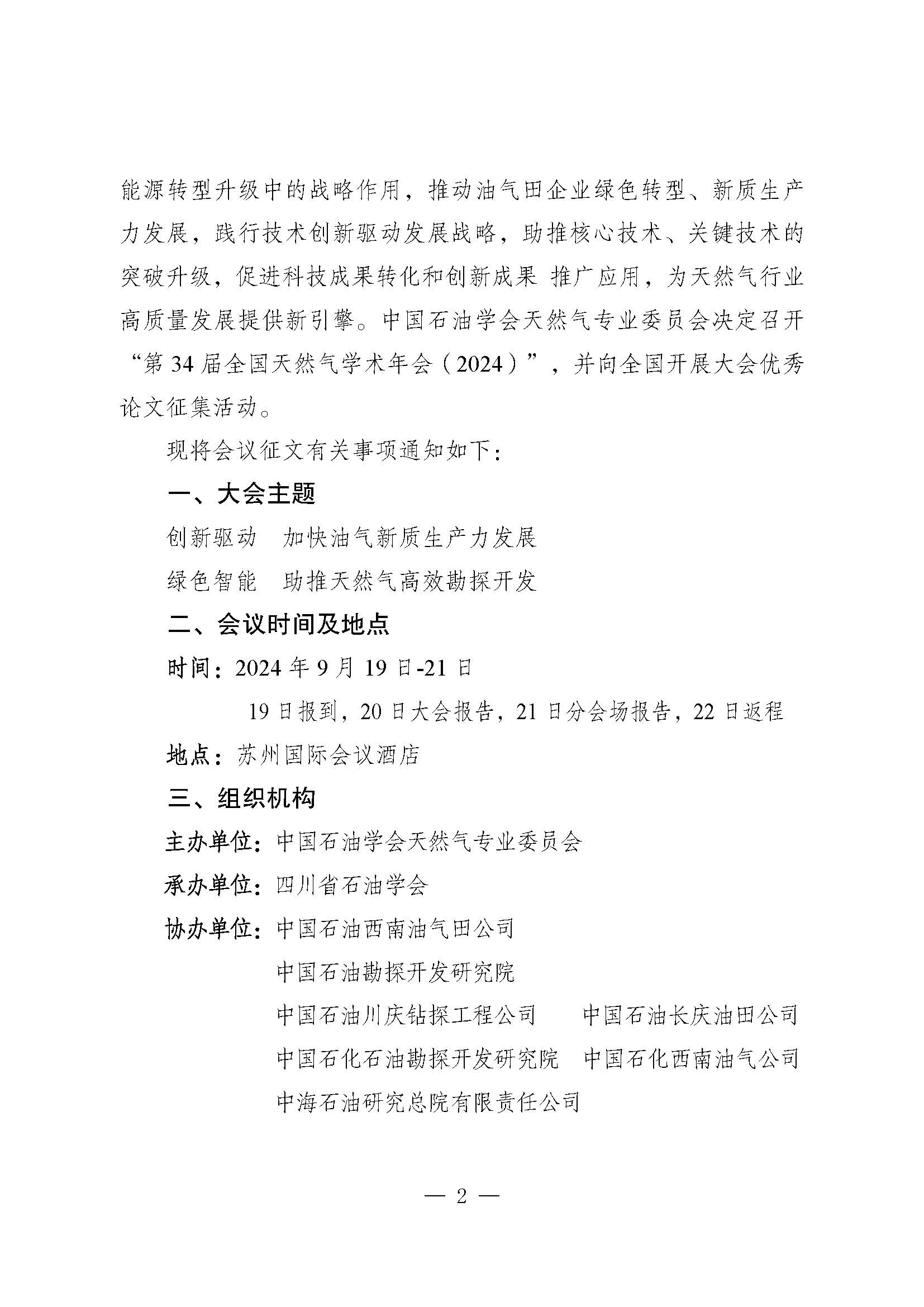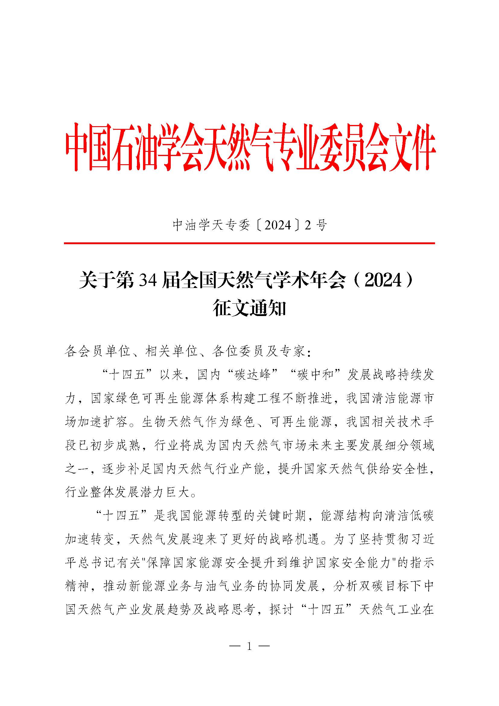 关于第34届全国天然气学术年会征文通知