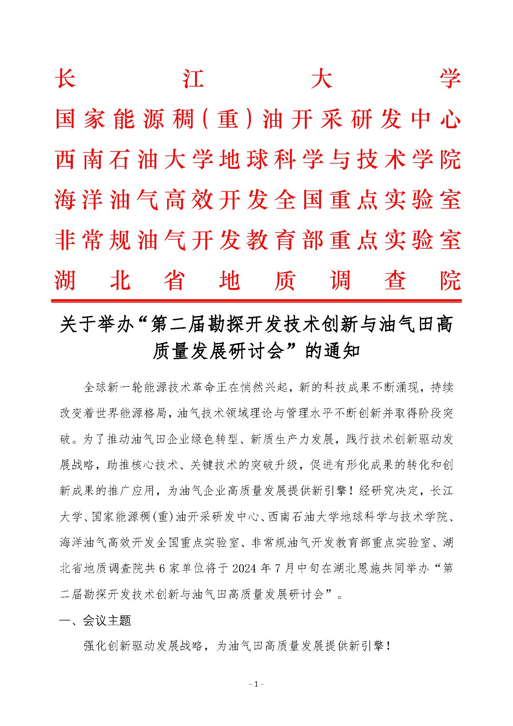关于举办“第二届勘探开发技术创新与油气田高质量发展研讨会”的通知