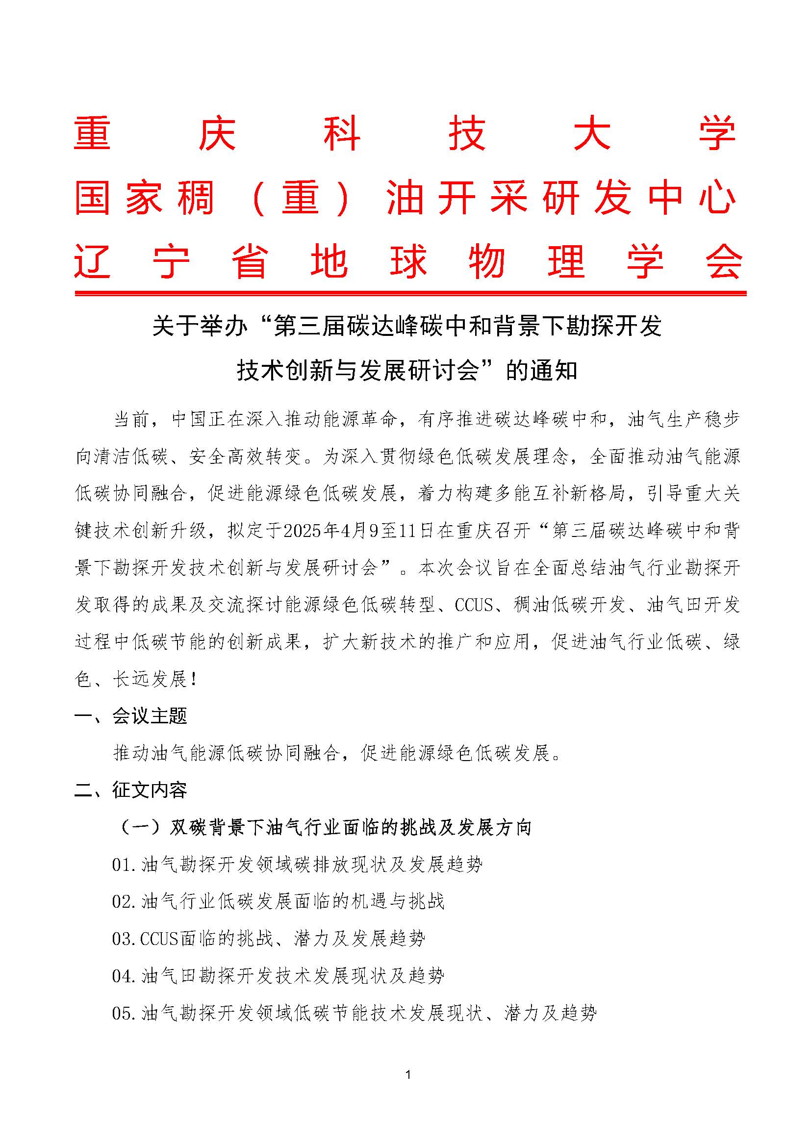 关于举办“第二届碳达峰碳中和背景下勘探开发技术创新与发展研讨会”的通知