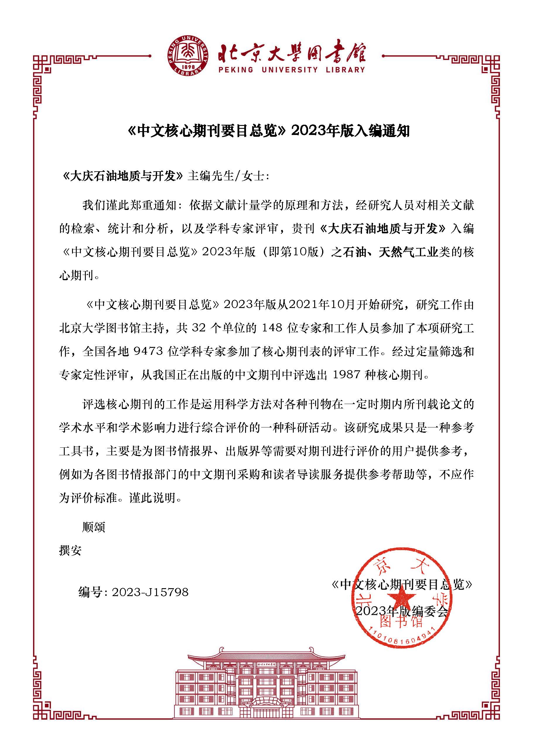 我刊入编2023年版《中文核心期刊要目总览》